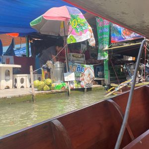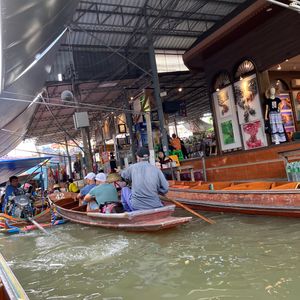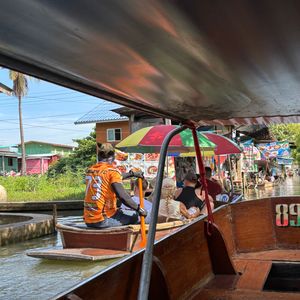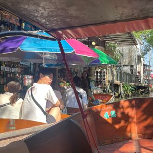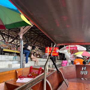 一つ目の観光場所は水上マーケットで現地の人の生活を肌で実感できました。特に待ち時間などはなく、現地に着くとすぐにボートに乗ることができました。ココナッツアイスが絶品です。二つ目の観光場所はメークローン市場で、スタッフの方が電車が来る時間などを事前に知らせてくれるため待ち時間はショッピングをして楽しみました。想像以上に電車が近く迫力満点でした。