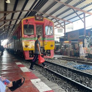水上マーケットではおいしいココナッツアイス!🍨そこから鉄道市場に移動し、1時間強の自由時間になりました。電車を間近で見たり、買い物したりと自由に時間を使えてよかったです。