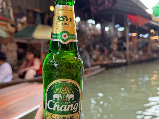 水上マーケットでは少しスリルもあって日本ではできない体験ができたと思います!少し割高ですが、記念にビールを買って楽しみました笑
