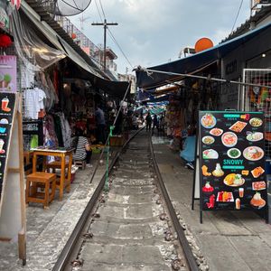 メークロン鉄道市場では、線路の両側に市場が広がり、電車が来る時間になるとお店の人たちが素早く商品や日よけを片付ける様子がとても印象的でした。電車が市場のすぐそばを通り抜けるスリルは、他では味わえない貴重な体験でした。思ったよりもスレスレの距離を走るので、間近で見ると驚きの連続でした。市場には新鮮な野菜や果物、魚介類などが並び、ローカルな雰囲気も楽しめました。