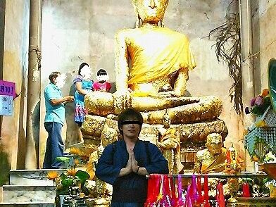 到着した頃凄く天気が悪く、同じツアー参加者の方も気になっていたようで、「雨降っても蛍は見れますか?」「ボートは出るんですか?」と言う質問をガイドさんにされてたんですが、濁した感じの返答をされ、絶対中止になるな…と思った僕は寺院めぐりのボートをチャーターして(500B)今にもスコールが降り注ぎそうな水上マーケットから脱出。そのチャーターボートの船着場の写真にあった寺院に一目惚れして「コレとコレが見たい!あと時間無いから!」とかたことの日本語で告げ後は「OK!OK!」と連れて行かれるがままだったんですが、正直何の情報も無く船に乗り込み後は不安でいっぱいでした…。ボートのおじさんは凄く優しげな人で、入って良いのかも分からない寺院の中まで案内してくれ、一人で来てたので写真もいっぱい撮ってくれるボートのおじさんはほんとありがたかったです、最後まで「高額なチップの要求があるのでは…」と不安はありましたが大丈夫でした。2個目に行った寺院なんてトラはいなかったですが8/13に行ったタイガーテンプルよりサブの動物が多かった…。