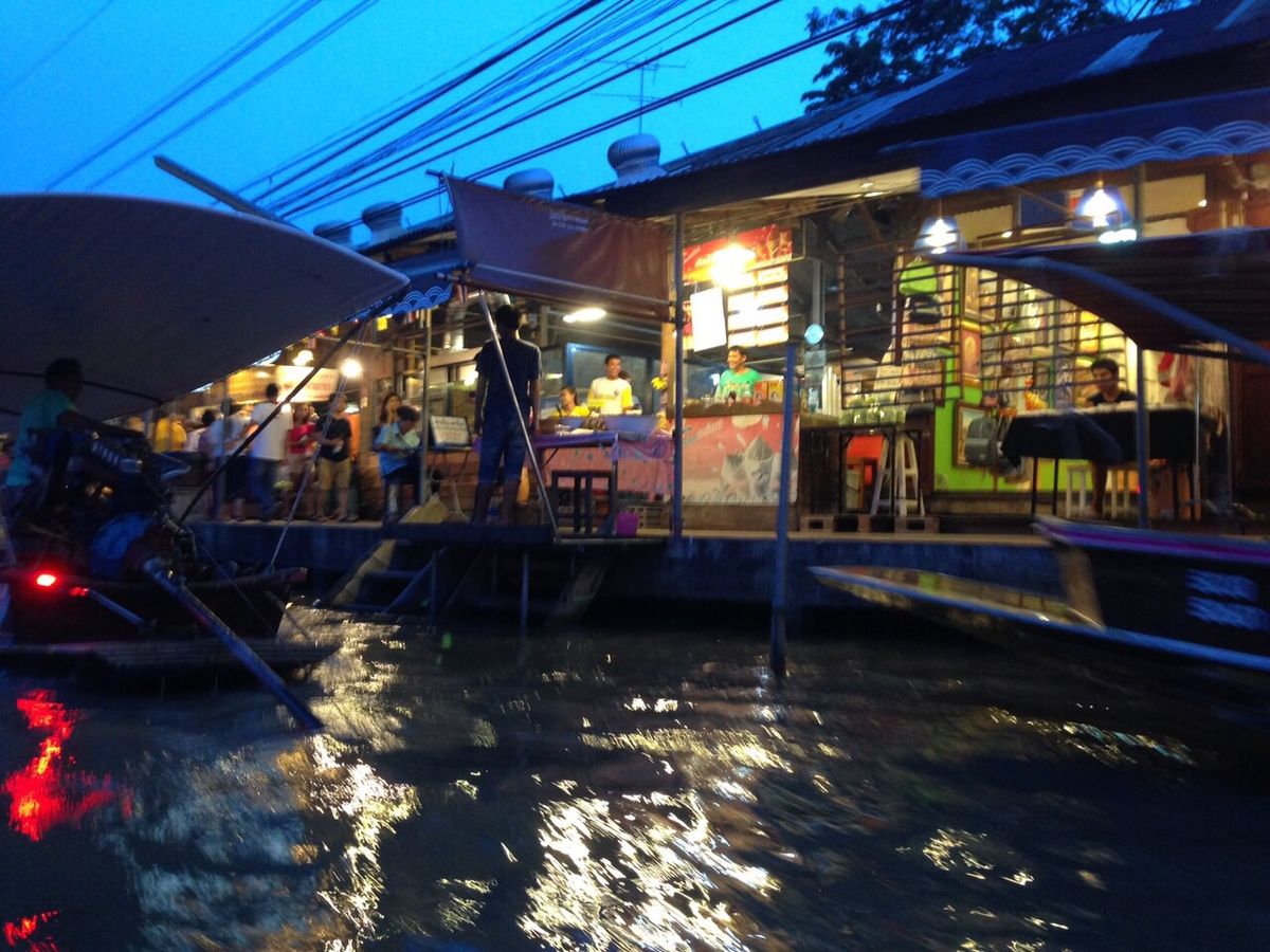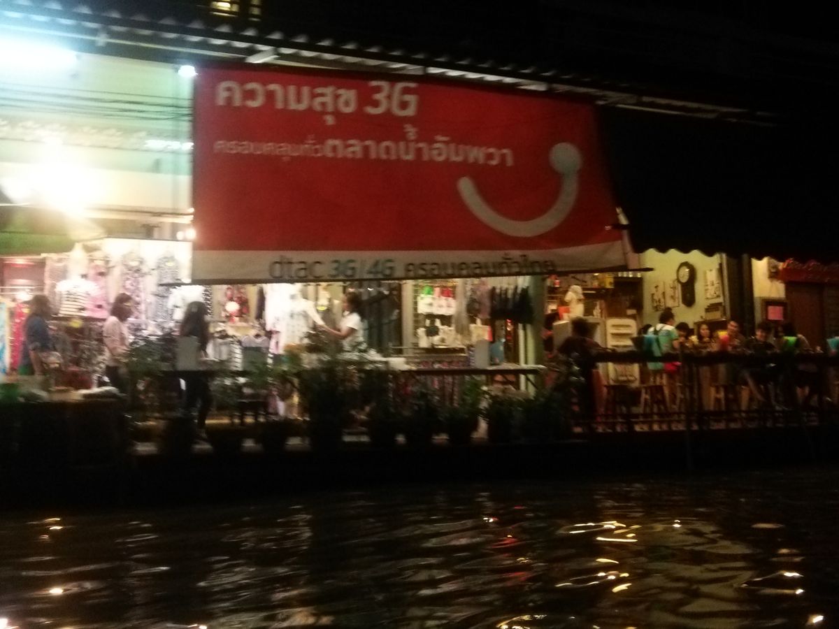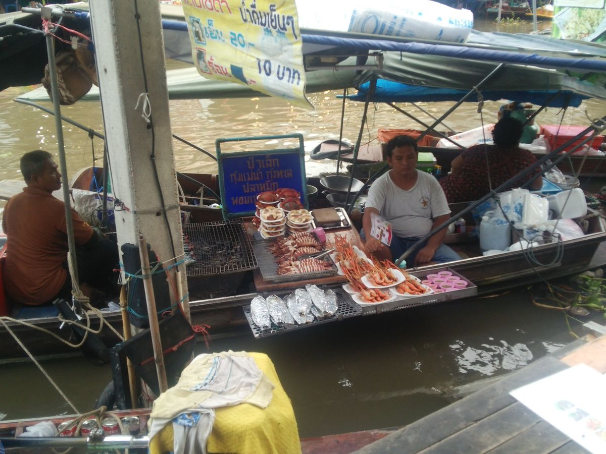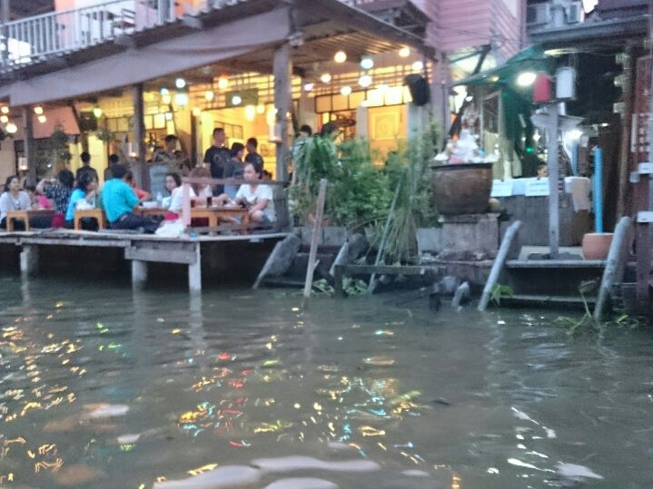 水上マーケットはあまり興味はなかったのですが、ホタルとはちょっとくすぐられて、、、雨季なので雨が心配。日本のホタルは雨が降っちゃうと光らない。当日までハラハラでした。バンコクより1時間ちょっと。意外に近い感じ。では6時半にここに集合。って、ものすごい混みよう。スリには十分注意しましょう。でもどこで食べたらいいのか、、、しばらくうろうろ、この地においては冷房の利いた食堂は無理。ま、水上市場ですからそれを求めてはいけないんですけどね。結局、集合場所から橋の反対側の一番奥手の食堂。ここよさそうじゃんてなところがあったのでそこで夕食。メニューは写真付きだったので問題なし。川のほとりで結構いいお味でした。さてさてホタルツアーはまだ明るいうちから始まります。途中時間調整でゆっくり走りますが、その気になるとかなりのエンジンがついてるボートです。乗り物酔いする人は薬を飲んでいたほうがよいかもしれません。ホタルは、確かにいるんですがあまり近くに行ってくれません。これは船頭さんによるのかもしれませんが、もっと近くで止まってくれると嬉しいと思います。スポットによってはかなりの数光っていますが、日本のホタルと違ってまるでLED見たい。でも時々、光りながら飛んでたので細工ではないのは間違いない。感想、ホタルってきれいな水ではなくても住めるんですね。