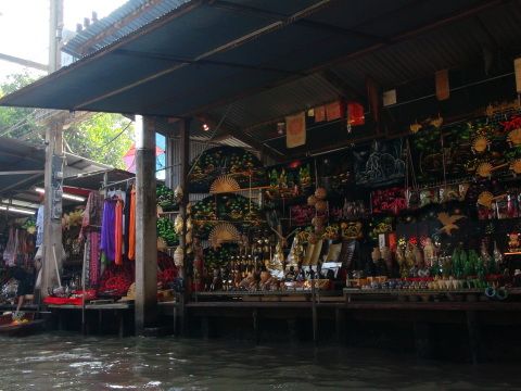 歩いて周れる所が思ったより狭かったので、手漕ぎボートに乗りました。一人200バーツでした。ボートに乗ると何件かのお土産屋さんに強制的に連れて行かれます。ただの見物と思って乗るとびっくりするでしょう。