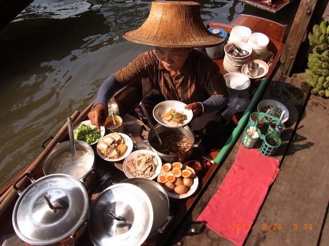 水上マーケットはエンジンボートでマーケットへ行くまではスリリングで楽しめましたが、マーケットでは小舟に乗り換えないと時間をつぶすのに一苦労します。土産物をはじめ何もかもがボッタクリ価格(価格表示がなく3~5倍の価格を告げられる)で買う気もなくなります。