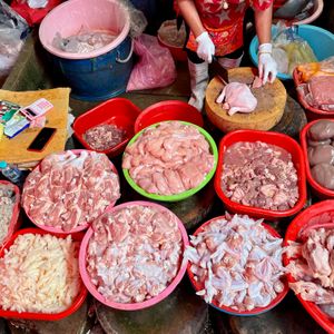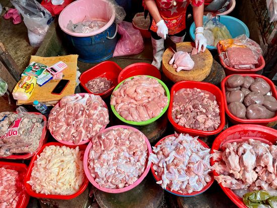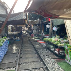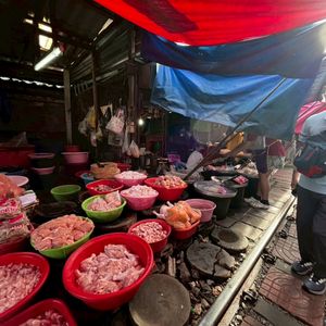 私が、当ツアーでいちばん印象に残ったのは、朝一番で行ったメークロン線路市場である。
