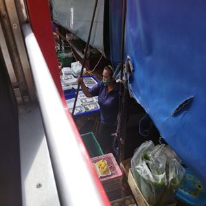 メークロン市場を列車に乗って去る時、最後尾に乗れたので、市場が再開される様子がよく分かって最高でした~!