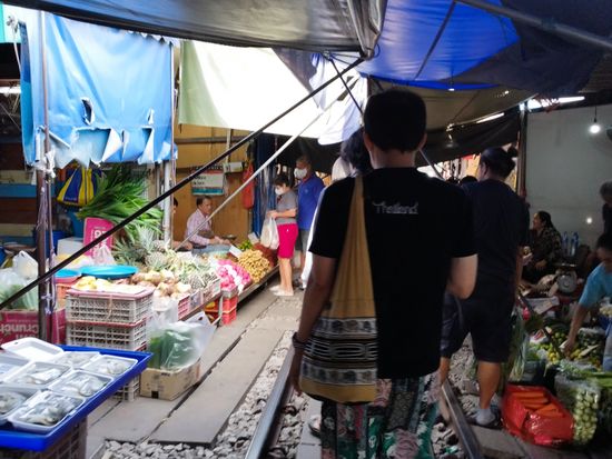 メークロン市場は線路の上を歩くので、慣れた歩きやすい靴がいいです!