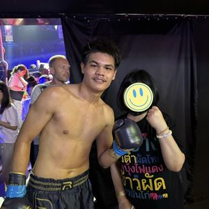 ガイドさんがムエタイに詳しい方で、試合後に強制的に選手の所へ連れて行かれて2ショットを撮ってくれました。化粧崩れてるから断ったのにwww