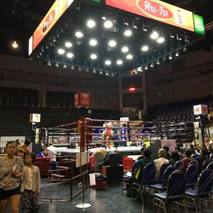 観戦自体は本当にリングサイドのど真ん中で、臨場感たっぷりにムエタイを楽しめました。試合に合わせて生演奏があるなど、大変興味深かったです。ペットボトルを持ち込めないそうで、プラスチックのカップに水を入れて渡されましたが、あちこちで倒されていて床は結構びしょ濡れになっていました。館内に小規模なフードコートがあり、あまりきれいではありませんがスープ麺が美味しかったです。謎のスナック売り場もあり、何かはわかりませんがチップスがおいしかったです。