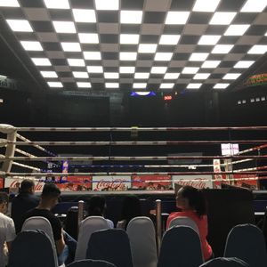 着くとすぐに席に案内してくれましたが、リングサイドの後ろの方でした。先着順ではなくいくつかの業者が席を割り振っているようで変更はできませんでした。判定の試合が多いときいていましたがノックアウトもいくつかあり楽しめました。中心部からそれほど遠くはないですが、行きは渋滞で結構時間がかかります。帰りはタクシーがつかまえにくいので、交通手段がセットになったプランがあってもよいかと思います。