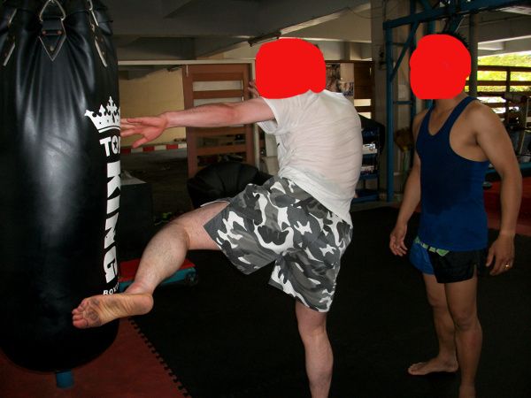 体験は縄跳びから始まり、左右のパンチ・キック・ひじ打ち・ニーの順でタイ語交じりの英語で習いました。私の場合、覚えが悪かったせいか、トレーナーの方に怒鳴られたり、はたかれたりしたので、私も頭にきて言い返したりして途中でやめて帰ろうかと思いました。一通り出来るようになった後、ミット打ち・サンドバック打ち・腹筋で終わりました。ミット打ちの際は一通りの形がほぼ出来るようになったためか、褒められる機会が増え最終的にはフレンドリーで分かり合えたというような良い感じで終了しました。