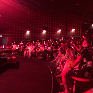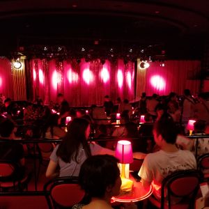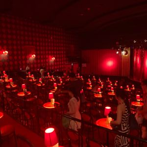 劇場内は赤と黒で妖艶な感じでしたが、ショウはシュールな題材も多くてニューハーフの面白さが足りない気がしました。