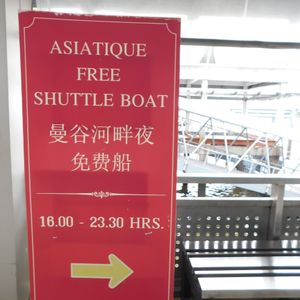 サバ―ンタクシン駅から無料送迎ボートが出ている船着き場に行きますが,いろいろな船が出ているので写真の看板を参考にしてください。