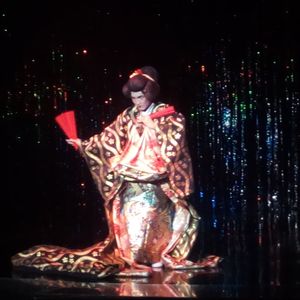 娘が言うには、『ムーランルージュ』は、私たちはこんなのをやるから勝手に見て行ってくれ~的プライドが感じられ芸術的でもあったけど、こちらの『ニューハーフショー』は、お客さんを全て楽しませようという心意気が感じられる。が、日本、韓国、中国、アメリカ、などと各国ごとでテーマをわざわざ作っていたのは、媚びを売ってるようで余りよろしくない・・・ということでした。