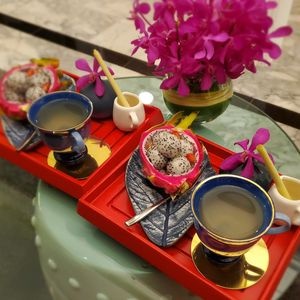部屋が寒く(バンコクの室内ではよくあること?)、終始手足が冷たかったのですが、最後のバラのお風呂は熱々で、長くは入っていられなかったです。途中、ドライフルーツとともにラノーンティが2回ほど出されました。