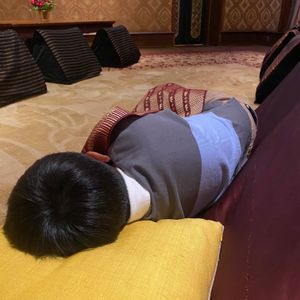 伝統音楽の調べとともにお腹も満たされ我が子は途中から夢の世界に。