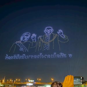 期間限定でチャオプラヤー川で行われていた1000台からなるドローンショーを見る事が出来ました。ちょうど食事も一段落着いた頃のタイミングでもあり、かなり見応えがあり楽しむ事が出来ました。