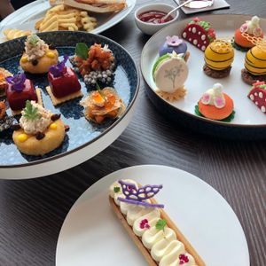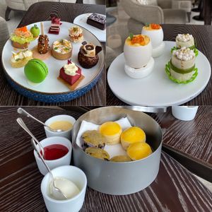 ホテルに入るとすぐにドアマンの方から声をかけられ、「アフタヌーンティー」と伝えるとラウンジまでの行き方を案内していただけました。少し早く到着してしまい、英語で何と伝えよう、と考えていたら、すぐに席を案内され、接客も親切でした。スイーツもセイボリーもバランスがよく、ありがちな甘ったるさもあまりなく、おいしく完食。眺めの良い席で雰囲気も落ち着いており、とても優雅な時間を過ごすことができました。