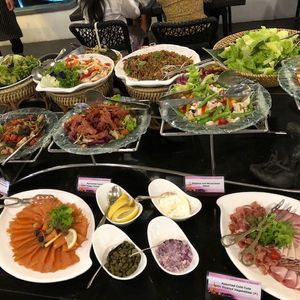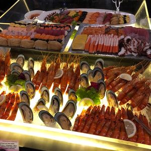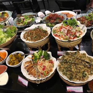 五つ星ホテルにあるレストランでのブッフェディナーです。チャオプラヤ川沿いのホテルでレストランから直ぐ前が川で眺めは良いです。ホテルがバンコク中心部にあるような都市型でなく、リゾート感を演出した作りで雰囲気が良く、開放感があります。メニューは、洋風、和食、中華、メキシコなど豊富で、特にシーフードと肉系はその場のグリルで焼くスタイルで人気でした。デザートもケーキ、アイスクリーム、フルーツなど多数ありよりどりみどりでした。途中、レストラン中央部のステージにてタイ舞踊のダンスがあり、それも見どころのひとつです。レストランまでの送迎はないので自分でタクシー移動となります。夕方のバンコクは渋滞するので時間には余裕を持って移動することをお勧めします。スクンビットから早ければ30-45分、渋滞だと60分以上かと。