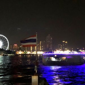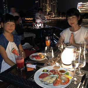 タイに16時頃着いて、ホテルにチェックインを済ませBTSでクルーズへ。1番出口をでるとホテルはすぐに見つかりました。ホテルが広いのでここから10分くらい歩くと乗り場へ。7時開始でしたが全員揃わないと出発しないので,7時30分スタートでした。多少遅れても大丈夫かな⁈と思いました。クルーズ中は自由に外を出入りできます。メニューは上の下か中の上くらいのレベルかと思います。タイでの思い出に是非。損はないです。静かにクルーズを楽しみたい方におすすめします。
