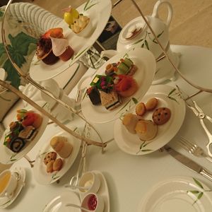 アフタヌーンティーの器も大きく変化してともに楽しめました。