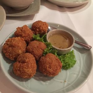 料理はプーパッポンカレー、空芯菜、トムヤンクン、揚げ物料理2品ほど、あんかけのかかったシーフード料理(名前が分からずすみません)がコースで次々と出され、女性2人ではボリュームが多く、余してしまいました。