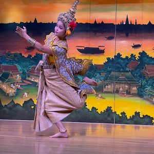サムネの印象で「タイ舞踊が見れる」と思ってましたが、中身は手腰を左右動かしてるだけて「?」でした。最初と最後はタイっぽい感じですが、中盤はカリビアン仮面?ポリネシアンファイヤーダンス?中国正月?バラエティー感は充分ですが、それならそれで楽しいと思うので、そういう案内に変えた方が良いですね。