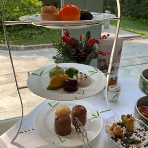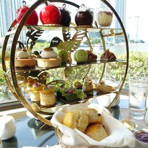 アフタヌーンティーには稲荷寿司や海老のダンプリング等もありました。スコーンがおいしかったです。ただスイーツ類は私には甘過ぎて食べきれませんでした。