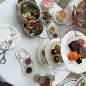 初めに紅茶の種類を聞かれ、アプリからの予約なのでスパークリングワインをサービスと言われセイボリーにぴったりの爽やかなお酒でバンコクの最後の日に乾杯