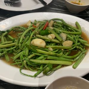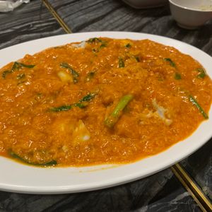 名物のカレーはカニがしっかり入っており、とても美味しかったです。他にカニチャーハンと空芯菜の炒め物を注文しました。