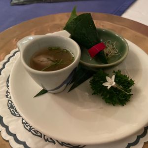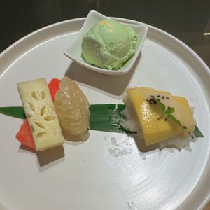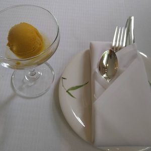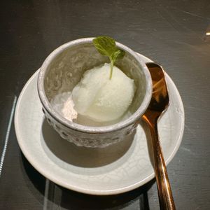 途中に口直しとしてパンダンリーフか何かのシャーベットも出てきたので、それもカウントすると計8品でした。