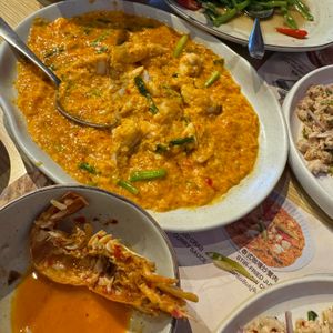 結果、店の前には長蛇の列!店員さんにバウチャー見せたらすっと入れました。蟹カレーおいしすぎて最高です!!カニチャーハンとの相性抜群でした