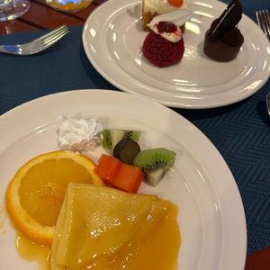 お料理もお寿司、お刺身、カニ等種類もたくさんあり全ておいしかったです。あと、デザートも種類が豊富で満足しました。お料理やデザートは次から次へと最後まで大皿に補充されていました。