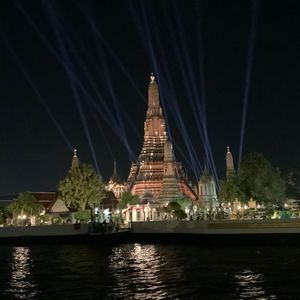 涼しいチャオプラヤ川の夜風に吹かれてライトアップされたバンコクの寺院や高層ビル群を眺めるのは気分いいです。