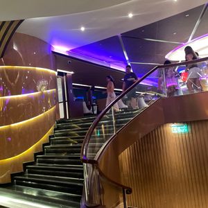 船内は華やかで、階段などで記念撮影を楽しむ方々の姿が印象的でした。