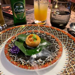 また、ウエルカムドリンクとちょっとした「タイ風おつまみ」の提供がありましたが、なかなかオシャレな器と味付けでした。