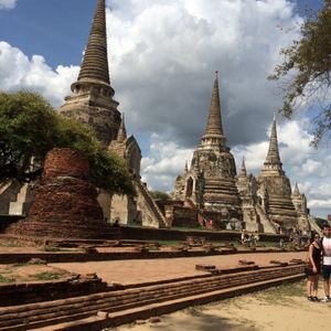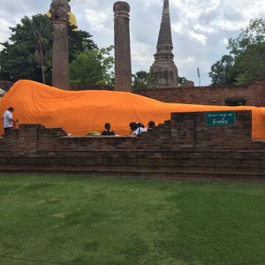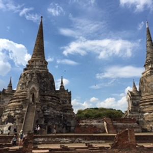 市内の有名寺院は調べると修復工事とのことだったので、世界遺産のこのアユタヤツアーにしました。午後の時間からスタートなので、午前中はホテルのプールに行ったりとゆっくり出来ました。アユタヤに着いてすぐ象乗り体験でしたが、子どもに還ったように楽しかったです。象使いも日本向けサービスか、童謡のぞうさんを歌ったり、ラッスンゴレライをやったり笑ってしまいました。遺跡はワットプラシーサンペット、ワットマハタート、ワットチャイモンコンの3つを見ました。遺跡は広いし日陰もあまりないので水分補給しながら周りました。ガイドのトントンさんの話も面白く、それぞれの遺跡が離れたアユタヤでは効率的に観光することが出来たので良かったです。帰る前にロッティーサイマイを食べましたが、これも美味しくて良い体験が出来ました。帰りは18:30過ぎにはバンコク市内に到着したので夜の街歩きも存分に出来たので、良いツアーだったと思いました。