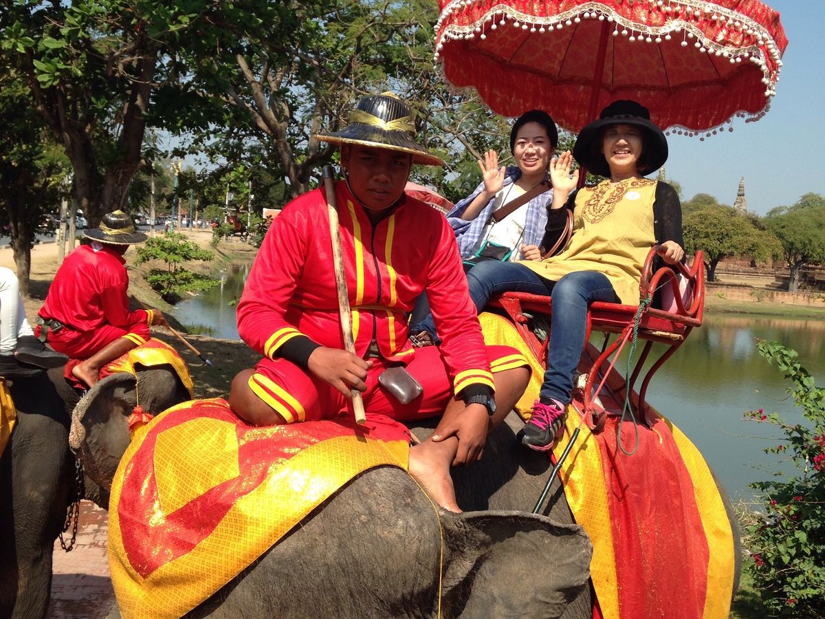効率よくアユタヤの名所を廻れるツアーです。各場所で最初に歴史などをガイドして、その後は自由行動です。この日は、爽やかなお天気の良い日で、朝イチで行ったバンパイン宮殿が、期待以上に気持ちよかったです。そして、他の方のコメントにもありましたが、象乗り体験も、期待以上に楽しかったです。象が普通に車と一緒に道路を歩くのは、タイならではだと思いました。写真撮影を象乗りさんにお願いすると、象が鼻でチップをせがんでくると他の方の書き込みで知っていました。多少チップを払っても象に乗っている写真を撮って貰いたいと友達と相談し、チップの値段を聞いたら100バーツでしたので、写真を撮って貰いました。良い思い出の瞬間を残せて良かったです。