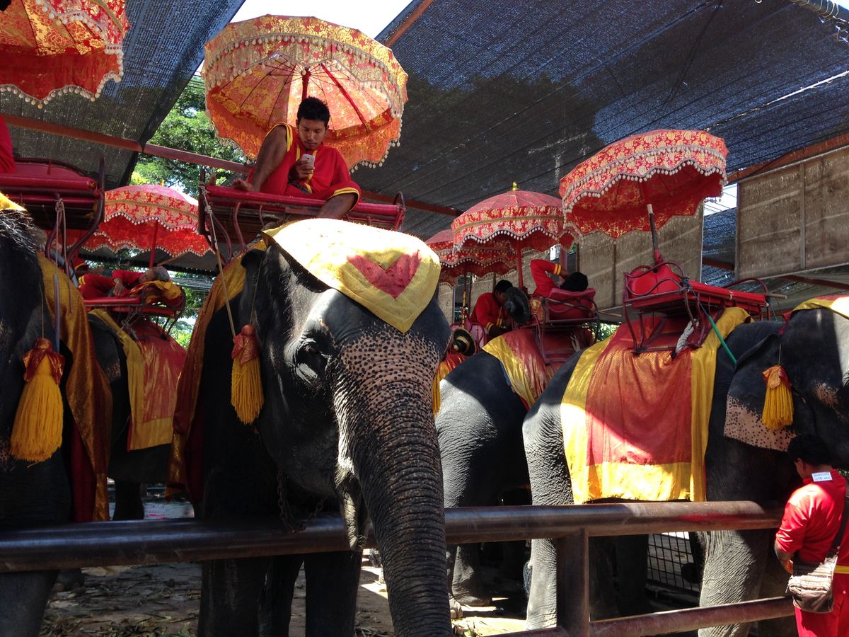 こちらはタクシー待ちのように、象が10頭ぐらい並んでいてやぐらから象の背中に乗ります。