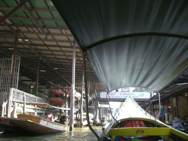 水上マーケットでは、別料金を払えば、小舟に乗り換えて細い水路に行くことも可能で、市場の臨場感をより感じることができました。