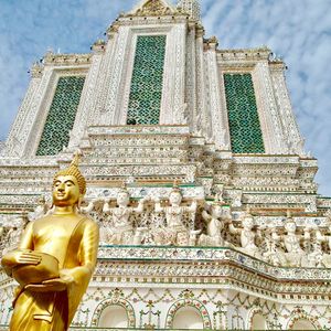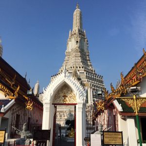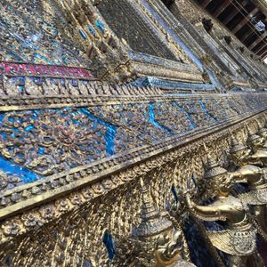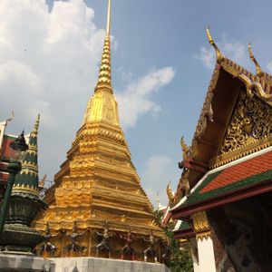 バンコクの王宮周辺の観光ツアーです。とにかく人が多いですが、金ぴかの建物や仏像、装飾に驚かされます。天気が良く青空に金と白の色が映えて綺麗でした。
