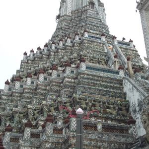 ワット・アルンの急階段は,70近い母が真っ先に登り,やんちゃなはずの子どもは怖がって躊躇。ガイドさんが,ふつうの記念撮影はよいけどポーズを撮っての記念撮影はダメですと言っていて,確かにそのような注意書きがありました。宗教上というより,安全上の配慮のようです。