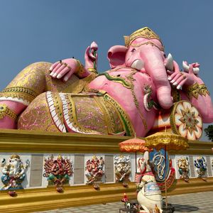 とても楽しみにしていたツアー。ホテルまでお迎えにきてくれたのでありがたかったです。当日は元日ということもあってか渋滞しており、急ぎ足での観光になり、念願のピンクガネーシャもじっくり見物!!とはいかず、さらーっと見る感じで、写真を撮っていたらガイドさんがどんどん先を行ってしまうこともしばしば、、。半日というスケジュールの中で焦っておられるのかなという印象でした。そんな中でも説明はしっかりしてくださっていたのでわかりやすく、勉強にもなりました。最後はホテルまで送り届けていただく予定でしたが、おすすめのショッピングモールを教えてくださり、そこで下ろしてもらいました。自分たちでは回りきれないところが効率よく回れるのがツアー。選んで本当によかったです。ありがとうございました。