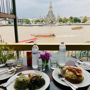 日本語を話せるベテランのガイドさんで一生懸命説明してくれたり、屋台で買った揚げものを分けてくれたりもしてくれました。自分をバックに写真を撮ってくれる時も、わざわざ他の人をよけてもらってやっぱりタイという優しいお人柄が出てて ますますタイが好きになりました。ただワットアルンや王宮は中国人観光客がすごく多くて少し辟易しました。後もう一つ 昼食の後 ガイドさんが店員の方に掛け合って屋上のテラスの最高の場所でワットアルンとチャオプラヤー川の写真が撮れてガイドさん様々です!