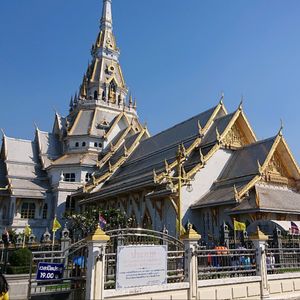 ガイドさんは時間厳守の予定10分前にホテルに来て頂き幸先良いスタート。繁忙期だけ契約して働くと言う年配の女性ガイドさんでした。バンコクから片道約1時間半の移動中は色々な話を聞かせて頂きました。ワット・ソートンに到着、雲一つない晴天の下で白く輝く寺院はまるで芸術品のようで外観も内観もすばらしく感動しました。現地の参拝者が多く観光客はほとんどいませんでした。滞在時間は30分程度だったと思います。