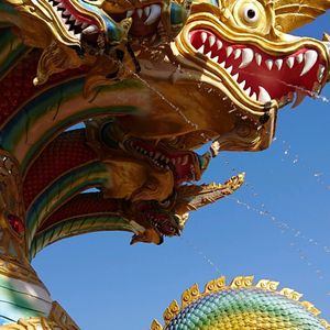 ワット・パクナムは白い大きな仏塔の中に入り5階まで上がるとフォトジェニックな幻想的な光景に出会えます。