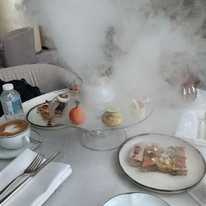 温かいスコーンから始まり サンドイッチ 次のケーキの時にはドライアイスのスモークが出て 感動の演出でした。