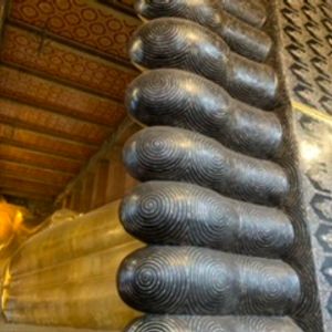 お釈迦様は足の裏まで奇麗な彫り物が施されていました。