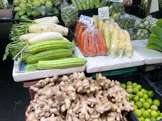 市場では見たことのない、果物や野菜、仏教として捧げる花も種類が豊富で実際に作っているところも見れてよかったです。