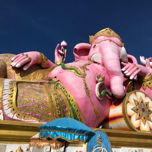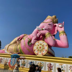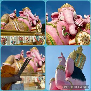 ガネーシャは観光客の少ない朝が狙い目です。市内から2時間弱かかりますよ。25年には立っているピンクガネーシャができるみたい、建造中でした。あ、トイレは少し汚い。ガネーシャ背中にあるトイレが1番きれ